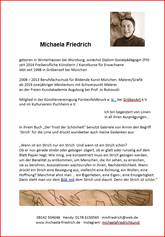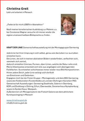 Zur Erinnerung an die Germeringer Künstlerin und ehemalige Dozentin dieser VHS Künstlergruppe Constanze Wagner (†).