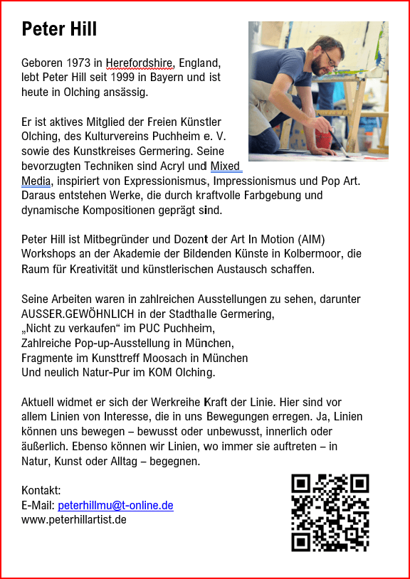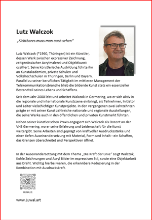 Vom 25.09.-05.10.2025 fand die Kunstausstellung mit dem Titel “Die Kraft der Linie” statt. Unter der Leitung des Dozenten Lutz Walczok, haben Künstlerinnen und Künstler zwei Jahre lang gemeinsam an diesem faszinierenden Thema gearbeitet.