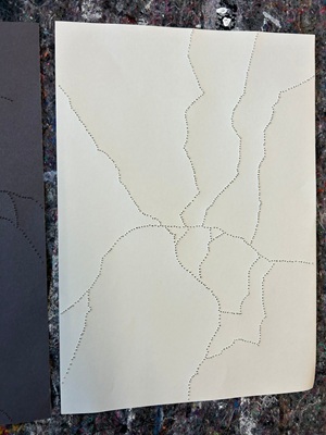 Arbeitsstand zur Umsetzung zum Werk "Schwarz/Weiß+". Also die Farben Schwarz, Weiß und eine weitere Farbe.