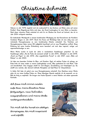 Unsere Künstlerin und langjähriges Teammitglied, Christine Bader, ist leider viel zu früh verstorben. Jedoch lebt ihr Stil und ihre Kunst in ihren Arbeiten weiter.