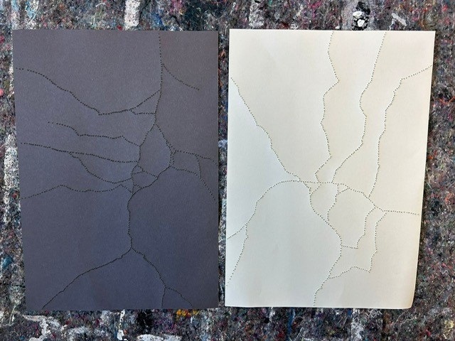 Arbeitsstand zur Umsetzung zum Werk "Schwarz/Weiß+". Also die Farben Schwarz, Weiß und eine weitere Farbe.