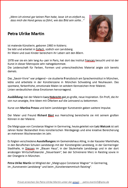Zur Erinnerung an die Germeringer Künstlerin und ehemalige Dozentin dieser VHS Künstlergruppe Constanze Wagner (†).